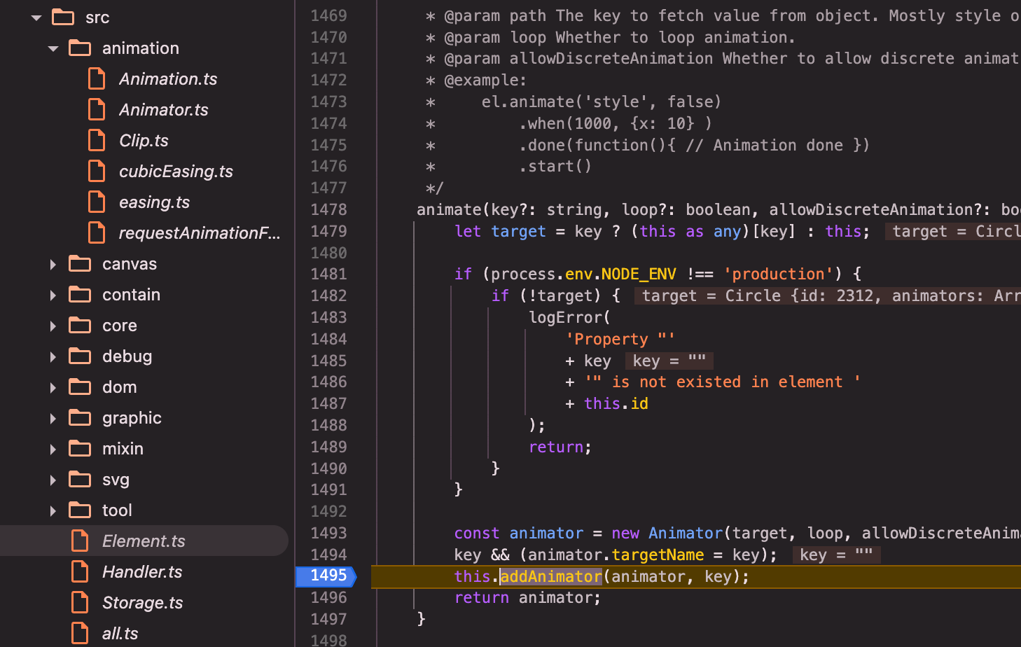 circle.animate()(circle是Element的子类):animate()=>this.addAnimator(animator, key)=> 函数内,关键调用zr.animation.addAnimator(animator)和zr && zr.wakeUp();