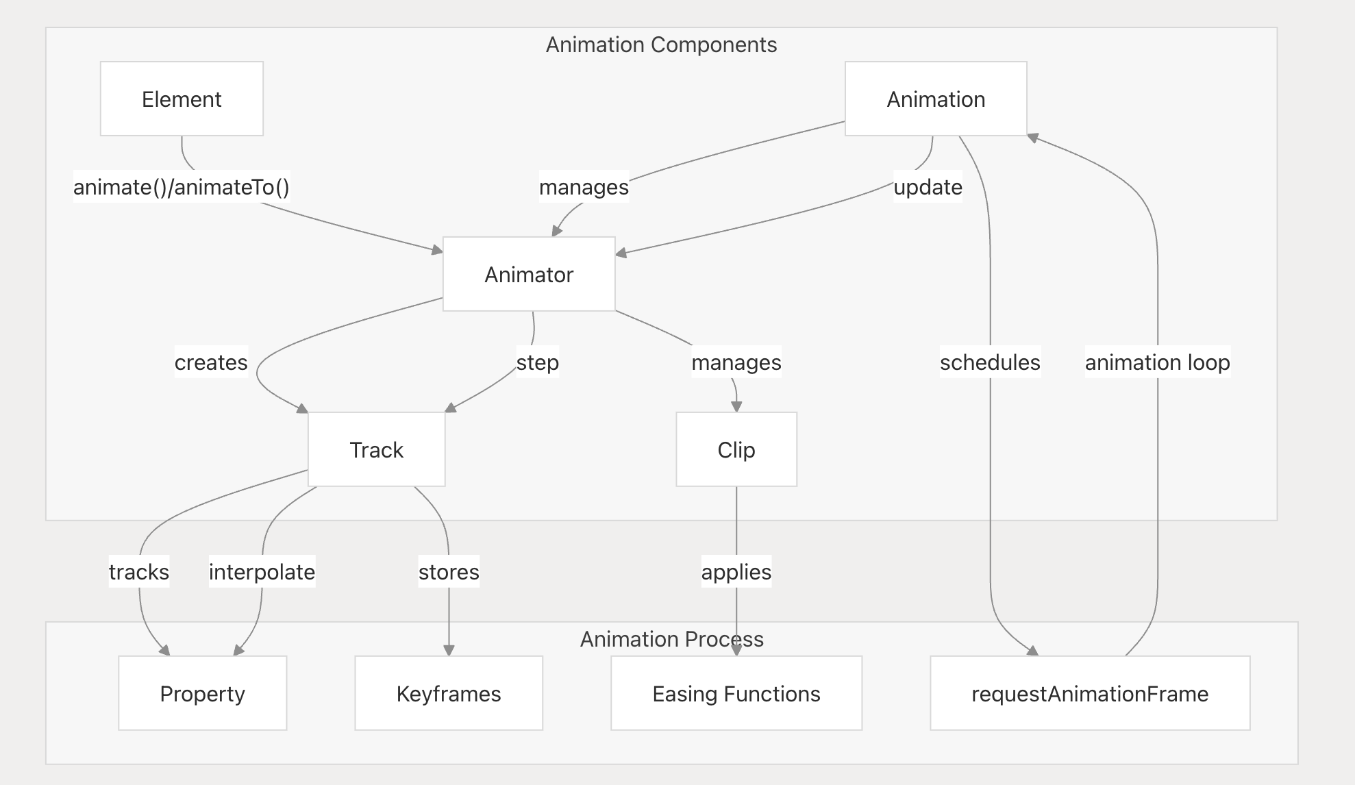 clip.step(time, delta), 通过链表结构管理动画的关键帧clip对象,每个clip实现了step方法,传delta来按照百分比来进行插值动画绘制;