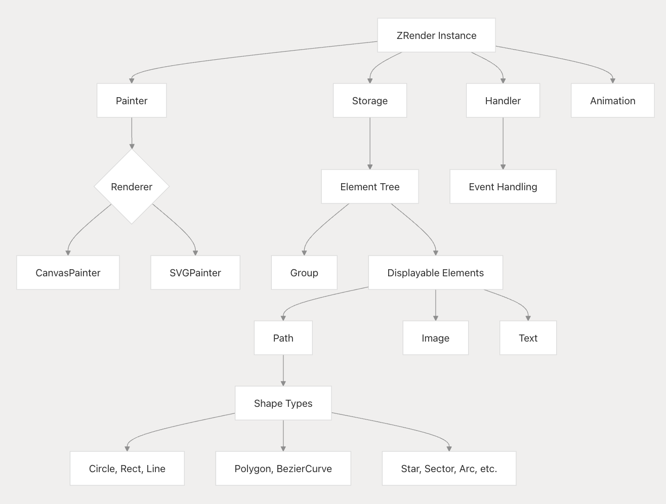 思考: 比如canvas怎么实现多个重叠元素中,某个一个元素的动画插值更新呢?:canvas没有元素的概念,只能清除然后重绘制,通过分层绘制来实现性能的优化:zrender 的分层设计通过:动静分离:静态内容永久缓存,局部更新:仅重绘变化区域,并行处理:多层独立渲染,资源复用:纹理/状态共享;实现了:复杂场景:流畅渲染10K+元素,动态内容:支持60FPS动画,混合渲染:Canvas2D/SVG/WebGL统一管理,这种架构使 zrender 能高效支撑 ECharts 等复杂可视化库,在保持渲染质量的同时,最大化性能表现。