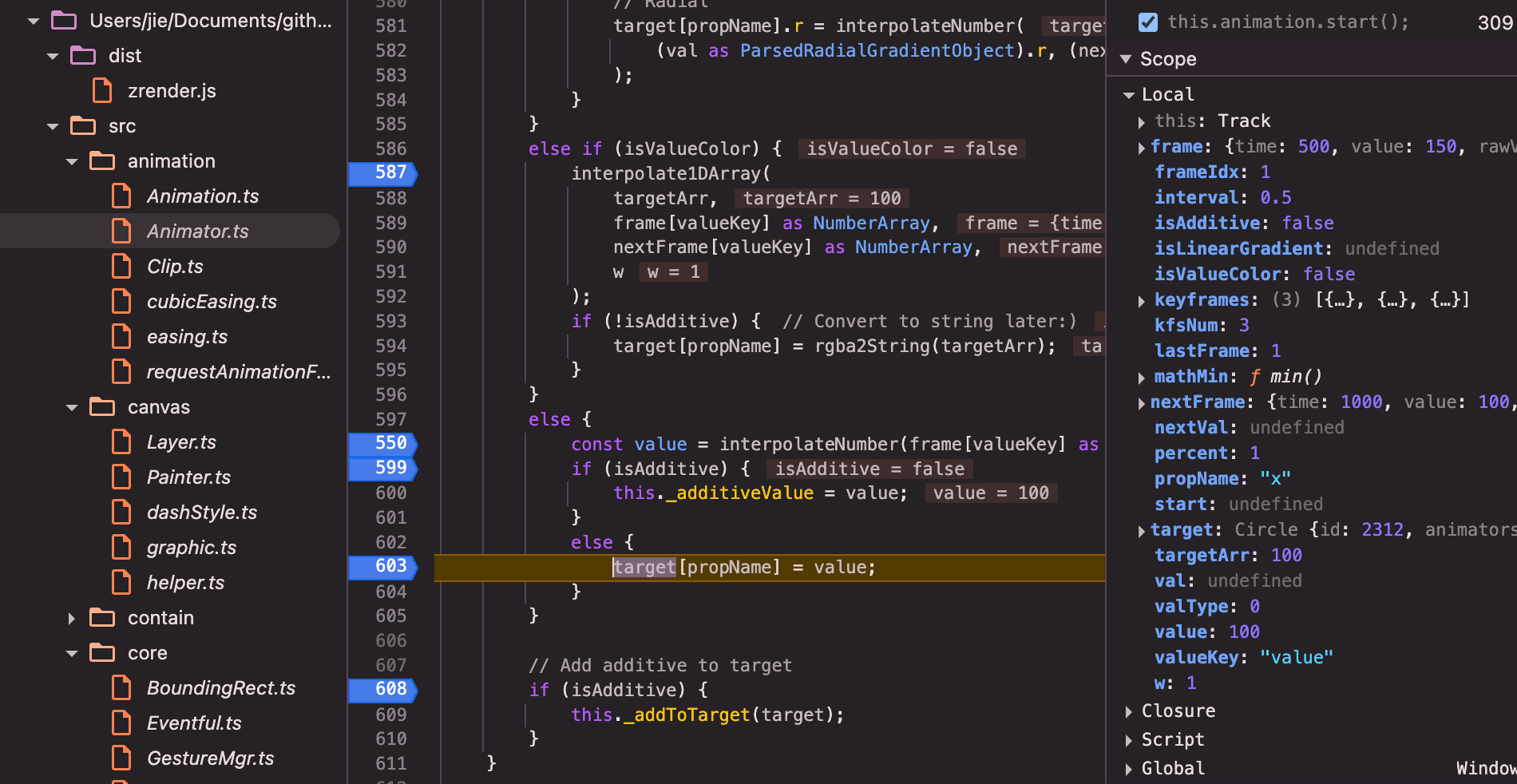 /Users/jie3131/Documents/github/zrender/test/animation-keyframe-easing.html, 即可开始调试流程;